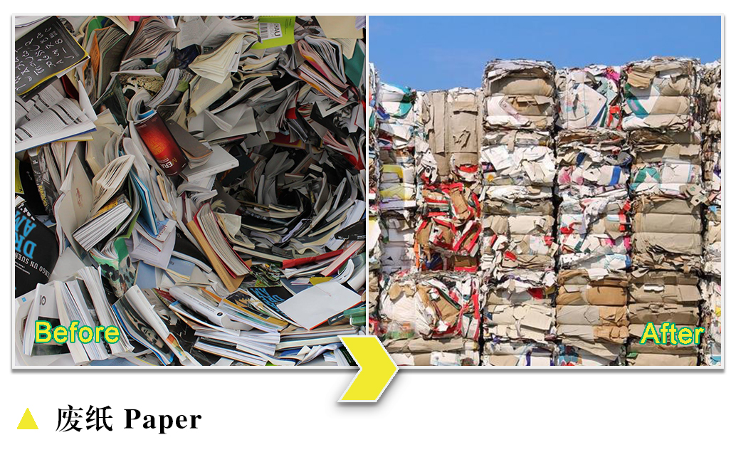 - 纸类: 报纸杂志、包装纸、瓦楞纸板、纸箱、纸盒、广告纸、各种纸厂印刷厂边角料等