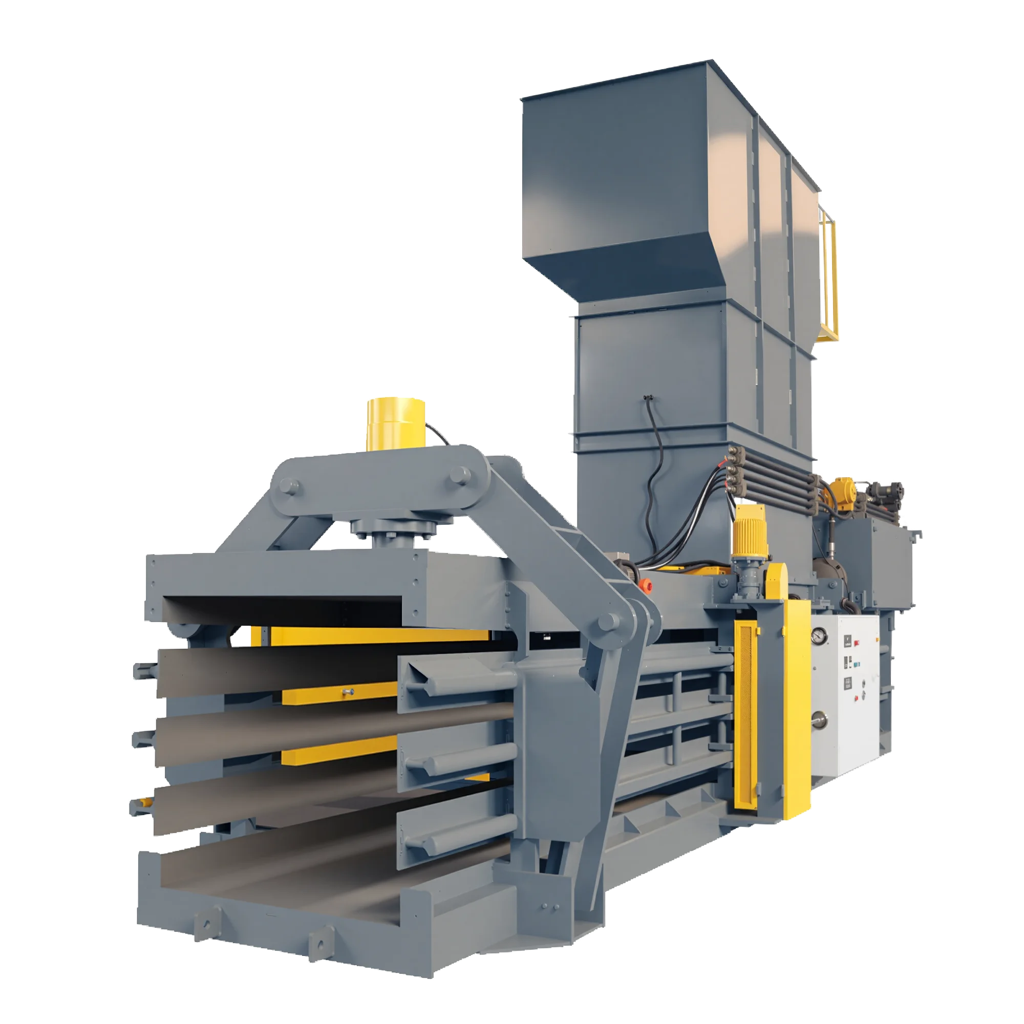全自动卧式打包机由箱体、液压站、液压缸、压头、穿丝机构、绞丝机构、缩口机构等组成。液压站提供的液压力驱动主缸带动压头对物料进行压缩,缩口机构负责提供包块通过阻力,穿丝机构和绞丝机构配合对包块进行捆扎。整个包块的压缩捆扎过程通过PLC控制,无需人工参与,自动化程度高,这使得它不仅效率高而且节省人工费用,因而被广泛应用于处理量大、处理速度要快的场合,比如纸厂、印刷厂、塑料瓶回收站、垃圾处理站等。