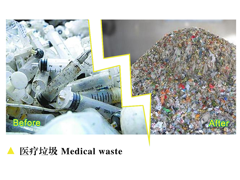 疫情期间医疗废物激增,因为需要破碎的物料里面有床单被罩,口罩,防护服,针管吊瓶等,不能直接投入到焚烧炉里面,在搅炉以及炉内运输的时候会缠绕,所以需要破碎,更细小的料也利于充分燃烧,节省焚烧时间。