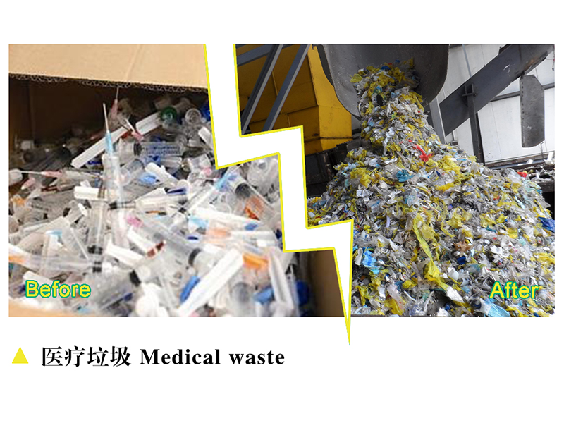 疫情导致大量带有病毒的医疗废弃物产生,其中医疗系统消耗量最大、需求最紧迫,前方用量急,后方处理也要及时,才能避免病毒的扩散。利用功能强大的双轴撕碎机破碎针管,防护服,护目镜,医用手套等。针管等塑料医废可继续破碎成小颗粒(需确保设备密闭,避免气溶胶扩散)。经彻底消毒的塑料碎片(如聚丙烯PP、聚乙烯PE)可交由医疗废物特许回收企业熔融再生,用于非医疗用途(如花盆、塑料板材)。针头需单独收集,经高温熔炼(≥1200℃)销毁病原体后回收金属。其余废弃物送至医疗废物焚烧厂处理。