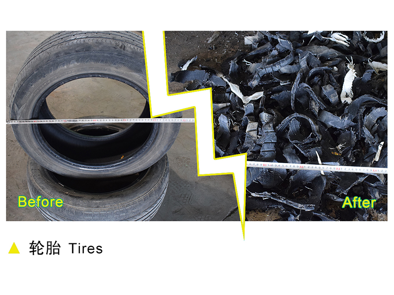 该公司是轮胎回收商,需对回收的轮胎进行撕碎处理,以满足后续设备进一步处理从而获取其中的钢丝和胶粒。
